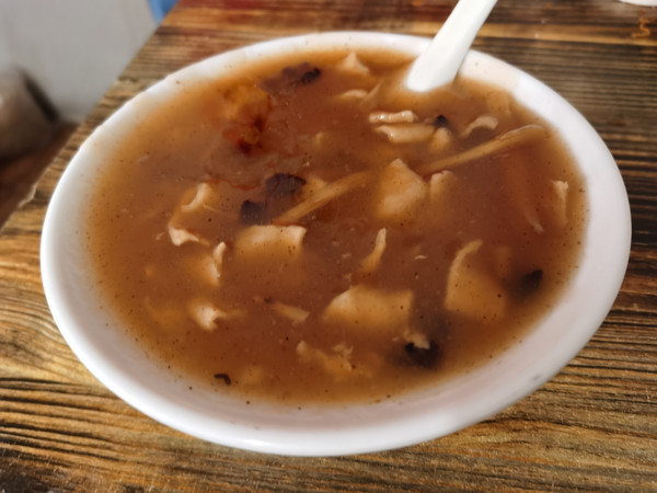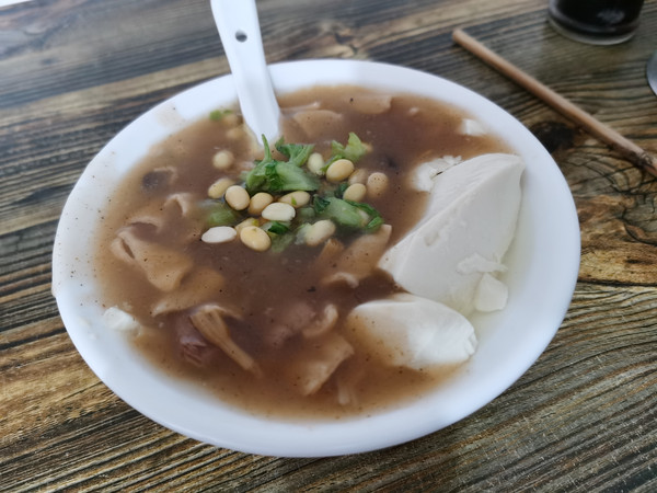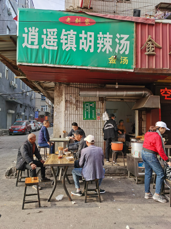 来之前我搜了附近的美食,很多,所以就挑了这家点评上收录6年的老店来尝尝。位置就在火车站附近,走近才发现是个苍蝇馆子,8点时候还是满满的人,主打的是胡辣汤。金汤胡辣汤,胡辣味道超级浓,喝一两口身体就已经开始发热啦。豆腐脑上面放的有豆子咸菜,我是第一次尝到,感觉还是 很新鲜的。不太习惯浓胡辣汤的人可以试试两掺一半胡辣汤一半豆腐脑,一样哗哗出汗,但是感觉要好一些。菜角是油炸的饺子,馅里面大概有韭菜、胡萝卜、粉丝等等,用料很实在,一块钱一个,很良心了。