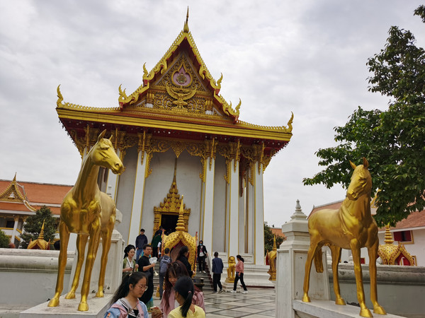白马寺是佛教传入 中国 后第一座由官府建造的寺院,有“ 中国 第一古刹”之称。现存的遗址古迹为元、明、清时所留,均列于南北向的中轴线上。大雄宝殿是全寺主殿,其他主要建筑有天王殿、大佛殿、毗卢阁等。寺内保存了大量元代夹纻干漆造像如三世佛、二天将、十八罗汉等,弥足珍贵。西侧 泰国 、 缅甸 、 印度 异域风格,东侧还有狄仁杰墓和齐云塔。