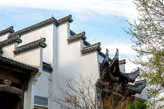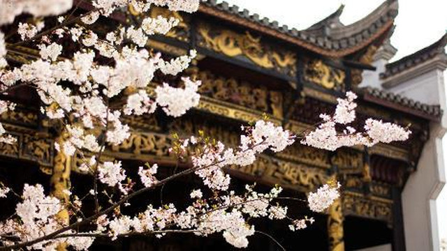 若耶音乐厅毗邻若耶溪,也是由传统徽派古建筑群移建而来的,可供各种会议使用。音乐厅周围是一片樱花林,现在正是樱花季,来这里遛娃再适合不过了,灰瓦白墙的徽派建筑,在樱花满枝的映衬下,如画般美丽。