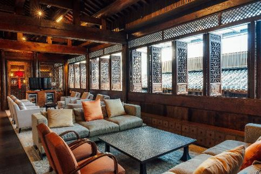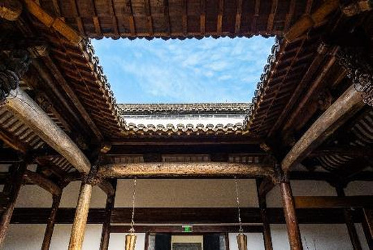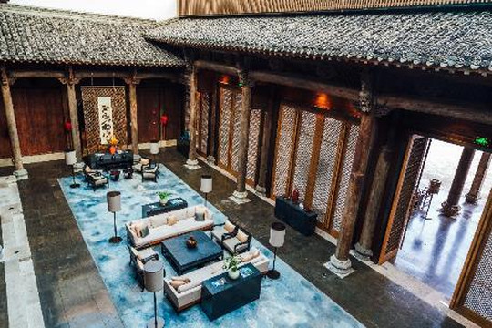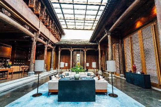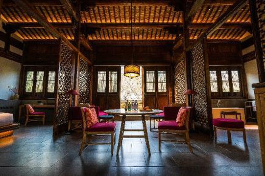 酒店大堂设在将军府内,这座将军府也是从安徽移建而来的,典型的徽派建筑,将军府是双天井的格局,所以采光非常好,一根粗大庄重的冬瓜梁可谓是整栋建筑中的宝物了。
