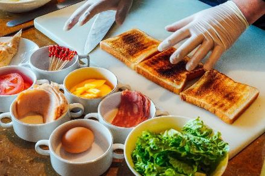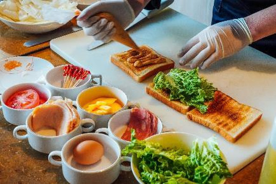 我对烹饪一直很感兴趣,烹饪这回事儿,并不和蓬头垢面的黄脸婆画上等号,你不一定要掂着大勺子,大火猛油的,其实学着做些西式的点心,也能让自己的生活变得更有仪式感,所以我们提前预约了酒店里的三明治课程,这看似简单的三明治,要做的好吃,也是颇有讲究的。