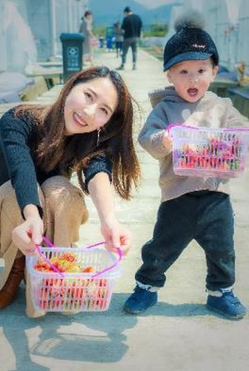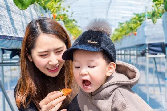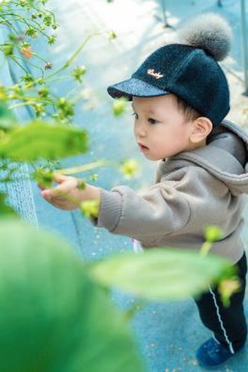 采着采着便有了经验,Casper一副认真脸的样子,研究着到底哪个草莓更红,更好吃。摘不下来的,糯糯的叫一声妈妈,我便屁颠屁颠的上去为他服务了。