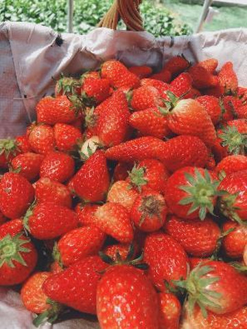 摘完的草莓放在篮子里称重,35元/斤不算便宜,但买的是份乐趣,想想可能还有许多被我儿子捏破的尸体,便觉得也是挺划算的了。