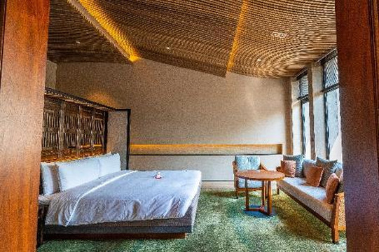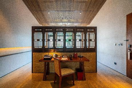 阳明阁和从房型布局来说没有太多的不同,不同处在于只是从窗外看出去的景色,阳明阁对的是竹林山景,而阁则依水而建,隔岸遥望对面的群山逶迤。