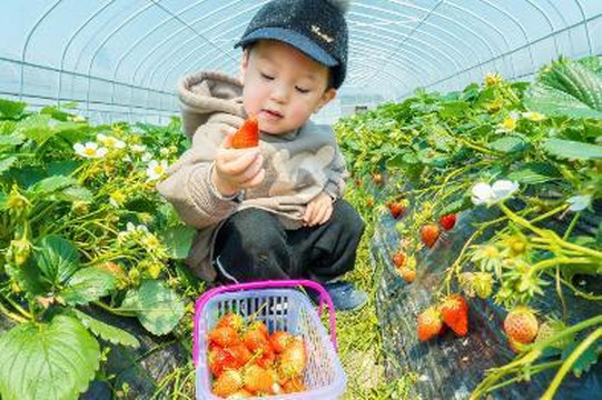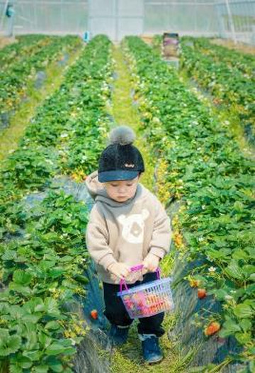 这是Casper人生第一次摘草莓,拿着个小篮子很是兴奋,草莓园打扫的非常干净,有大大小小好多个棚,草莓品种也有所不同。