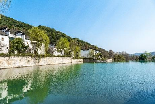 沿着溪水继续向上,便可以看到了,整一片湖景,让人顿感心旷神怡,Casper还在湖中发现了一群群小鱼,不亦乐乎的看他们游来游去。一栋栋徽派老宅倒影其中,成了一副天然的画卷。