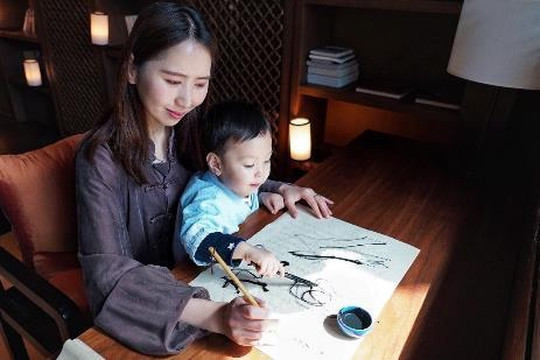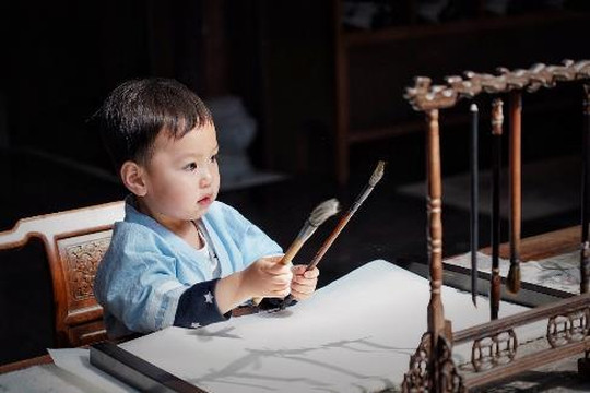 Casper是第一次接触这些笔墨,自然也是新鲜,装模作样的在纸上涂涂画画,有趣的很。传统的文化还是需要传承啊,对于建筑匠人是如此,对于文人墨客亦是如此,让孩子多了解一些中国的传统艺术,开的是眼界,长的是知识,学的是传统,或许这也是我选择安麓的原因之一吧。