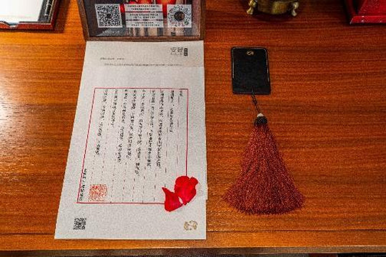 在书香阁一隅,有一张桌子,上面放着经卷与笔墨纸砚,经卷临摹很容易将自己浮躁的心平静下来,时光在指间流逝,一坐便是许久。