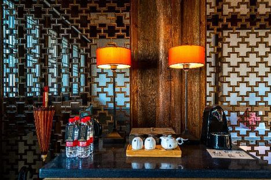 我们在酒店大堂内办理入住,阳明阁或是是这里的明星房型,都是独门独院的老宅,这才是安麓的精髓之处啊。每一处都是业主钟总自己的收藏物,看不得老宅因为破旧而被拆除,于是将其收藏,又花重金请了许多古建大师和传统匠人雕琢修复而成,恢复了老宅的烟火气~
