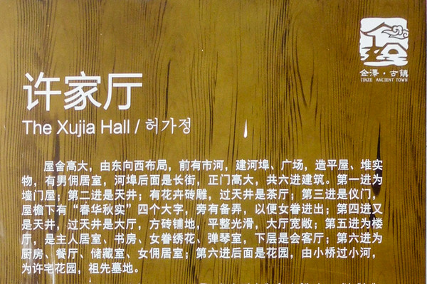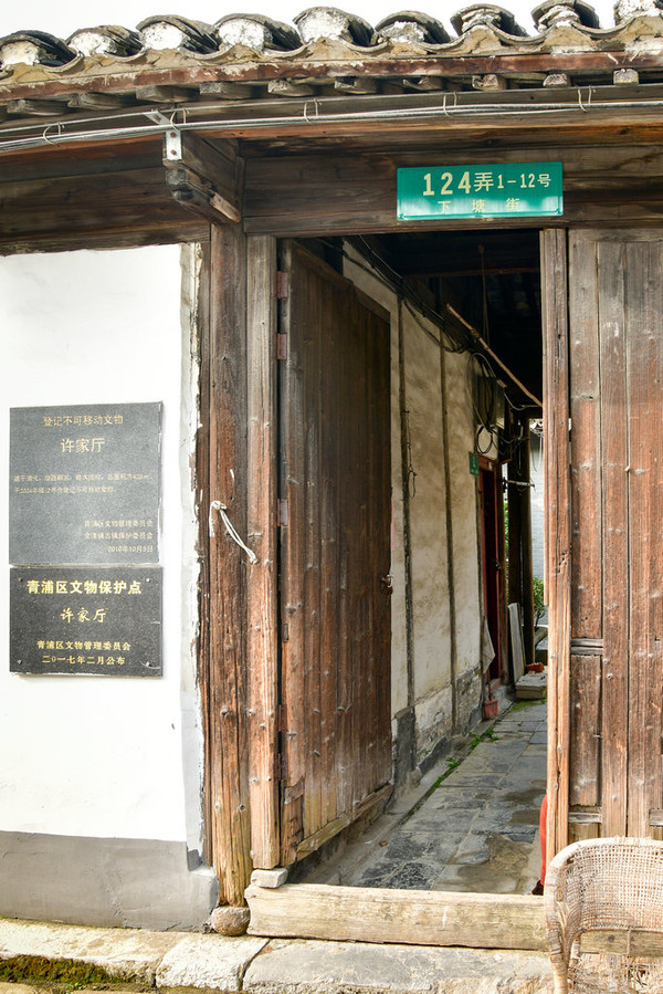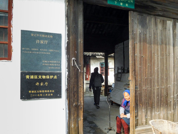 在天皇阁桥与万安桥之间的金泽下塘街上,有一座挂牌的老建筑——许家厅,是青浦区2004年公布的登记不可移动文物。