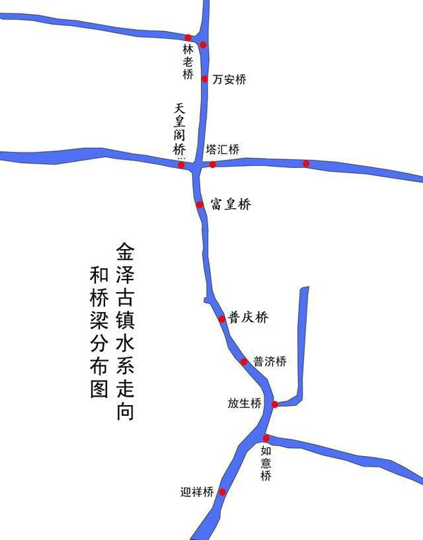 金泽古镇核心区有一条南北流向的市河,