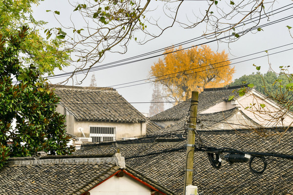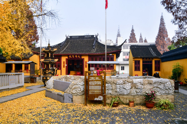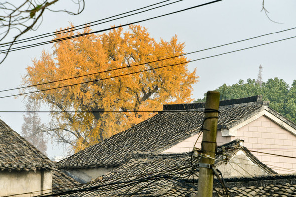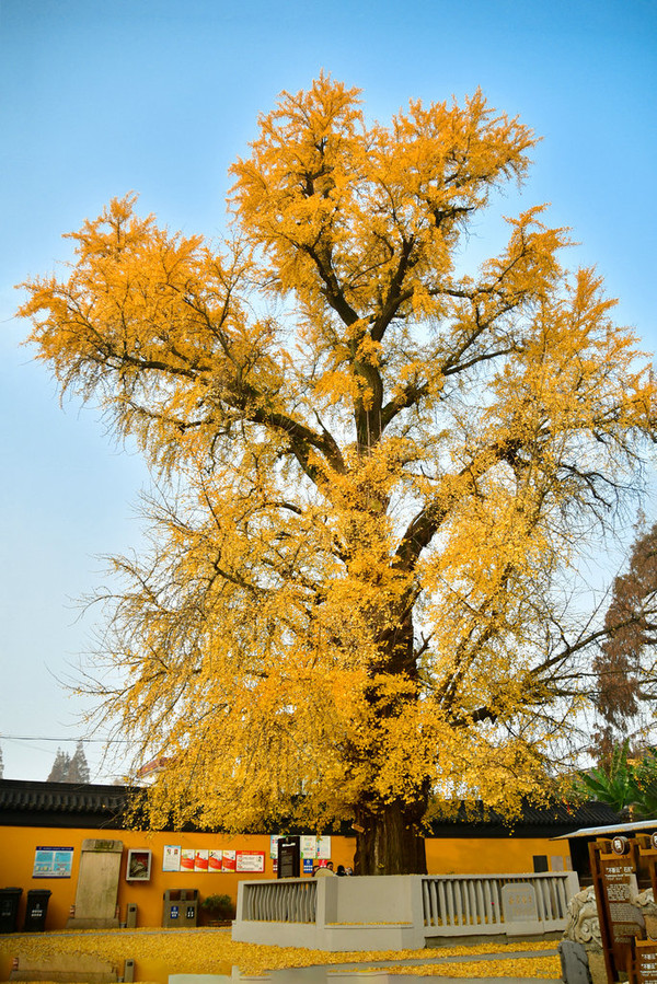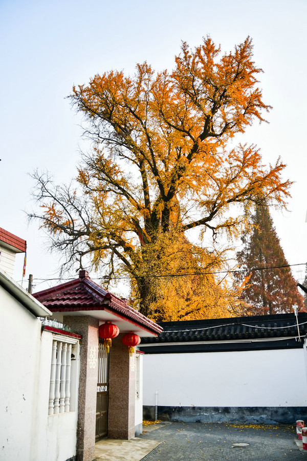 看到颐浩禅寺古银杏树露出高高的树冠