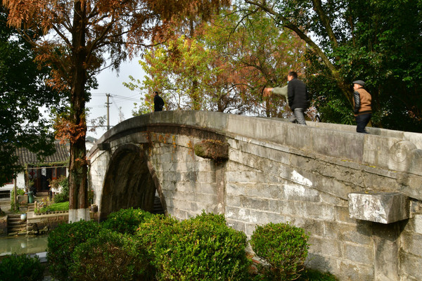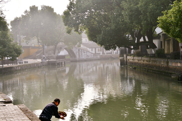 在一座座历史悠远的桥上,古朴的让人惊讶,这里没有太多的店铺,比其他上海周边其他的古镇少了喧哗和胭脂气,给人一种被时光遗忘的错觉。