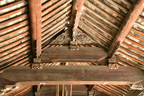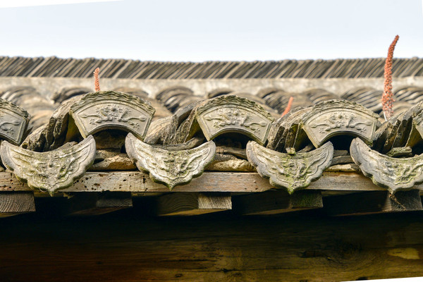 其中大门,门柱贴有大方砖,上方却是引来屋面青瓦直接遮盖,与仪门头的风格大相径庭。