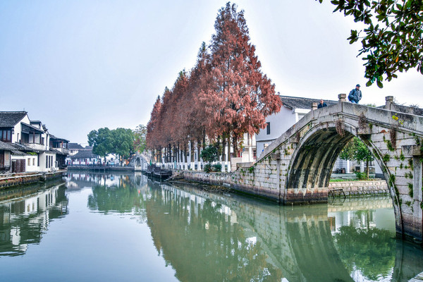 诗人余光中说过:“人上了桥,却不急于赶赴对岸,反而欣赏风景起来。原来是道路,却变成了看台,不但可以仰天俯水,纵览两岸,还可以看看停停,从容漫步。”这就是说的金泽古镇吧!