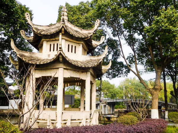 在迎祥桥的东南面,另辟园地,建造古亭,栽种树木花草,俨然是个小花园,供游者赏景休憩。