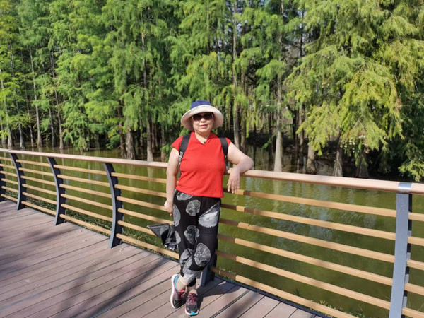 我们在离大门最近的一个电瓶车停靠点下了车,先扎进粉黛草中拍照。粉黛草,近几年在几个公园景区见到过,这里成气候的一大片还是让我们禁不住扎进丛中各种摆拍。绿意盎然中,粉色总是会给照片带来惊艳。
