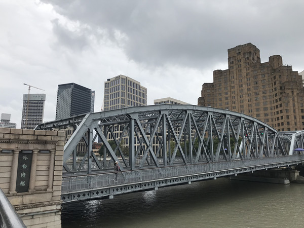 走过外白渡桥,找到闺蜜团来游玩时照相的地方,取景打卡。没有对比就没有伤害,暑假的蓝天白云出片确实是太漂亮了。外白渡桥并不长,不过百米左右,全钢的银白色桥体,已有百年历史,也是之前电影、电视剧常用的取景地。横穿过外白渡桥,走到外滩源区域,顺着小巷往回走,见证历史的异域风情古迹随处可见,浑厚而深沉,坚韧而典雅。回家后,老公曾问我,此行印象最深的是什么,我说:“是上海的老建筑,看不够,让人心能静下来。”对于热爱山水自然风光的我,自己也没有想到是这个答案。