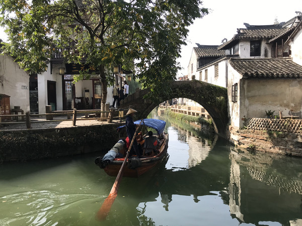 江南水乡古镇众多,六大古镇之一的周庄有它独特的地位。周庄隶属于苏州市昆山市,苏州城东南,与上海相隔七十多公里,至今已有九百多年的历史,是国家第一批5A景区。租车自驾就是方便,我们行驶了一个小时,就到达了周庄。周庄有多个停车场,多条进古镇的线路,沿着河道走就可以随意游览。