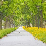 夏日阳光透过绿荫环绕的繁茂枝叶,肆无忌惮地洒在草坪上形成斑驳光影,草木与花香扑鼻而来
