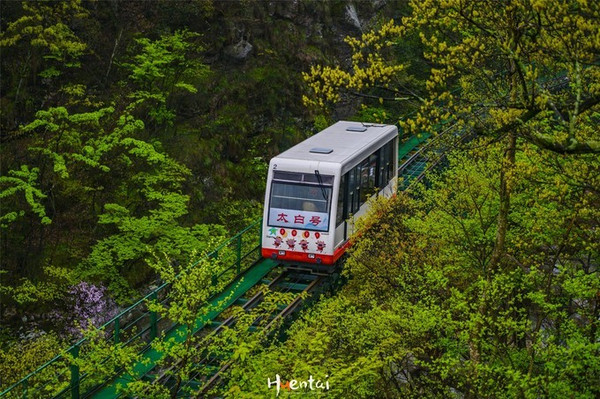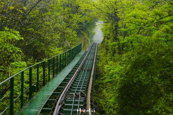 既来之则安之,这是我对旅行的态度。天气不能左右,那还可以发现其它美的东西。通往三叠泉瀑布的地轨小缆车就是本次最大的惊喜,白色的太白号车厢出现在满目苍翠之中,本身就是一道靓丽的风景线,单趟六分钟的车程也为我省下不少体力应对台阶。坐上缆车,四面的玻璃车窗很方便拍下沿途的庐山风光。可以拍一段很不错的小视频。