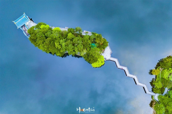 如琴湖是一处景色十分耐看的好地方,沿途可以找到很多好看的角度拍照。在这里我也航拍了一下,虽没有一览全貌,但秀美尽显。反正湖也不算大,我来来回回走了两圈。从锦绣谷里飘来的雾气,也让如琴湖多了几分“仙气”。