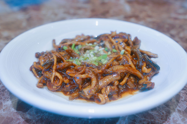 #响油鳝丝68元#这道在上海本帮菜中占有重要的一席地位的,也是我的最爱,它家的鳝鱼是当天活杀的,上桌后盘中的油还在“噼啪”作响,阵阵“哧啦”声中,油在鳝丝上翻腾,鳝丝在油里沸腾,令人馋涎欲滴,酱黑的鳝丝、中间点缀金黄的姜末、翠绿的葱花、乳白的蒜泥,煞是好看。色、香、味、形、声,几乎囊括了美食的所有要素,用筷子一挑,更浓更深的鳝丝香味直扑鼻尖。夹一筷子一尝,鳝丝滑嫩无比,一抿一嚼间,鲜滑油香的滋味和丰腴的绵软的口感穿透舌尖,充溢口腔,继而舒坦你的食道和饥肠辘辘的胃,让你胃口大开,食欲大振。强烈推荐。
