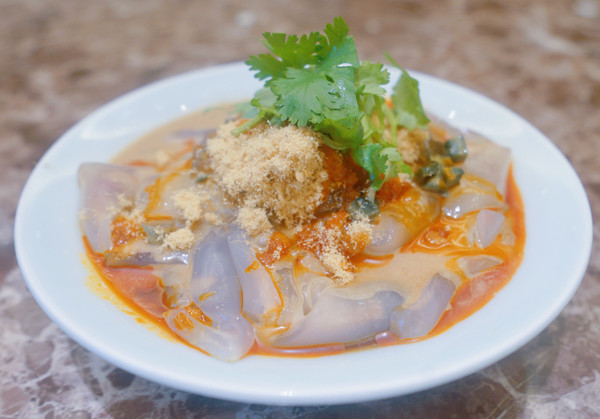 #芝麻酱凉皮26元#送一筷子到嘴里,真可谓是酸甜香,浓郁的芝麻酱醇配肉松,入口缠绵筋而釀,怎一个好吃了得啊。