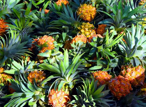 这些沟沟岭岭也是菠萝们的家,那坚挺昂扬、蓬勃向上的叶子,团团紧围,密密匝匝,形成苍茫如海的气势,装点着夏日的半岛景色。菠萝的海,一个名字叫活了一个果品。这“海”的形成的确名副其实。