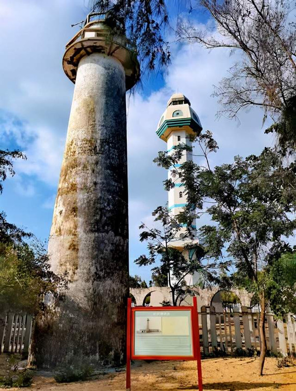 在新的灯楼角后面还有一座旧的灯塔,这里矗立着一新一旧、一高一矮的两座灯塔对比鲜明,也记载着一段曲折的历史。