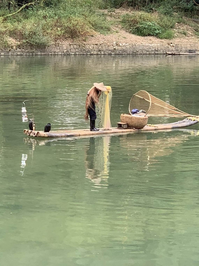 下了山,沿岸走着看风景就好了。还有渔民在这里表演捕鱼撒网,真的只是表演,为了让游客拍一些好看的照片而已。大桂林有心了。