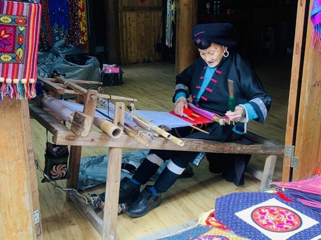 之后去了黄洛瑶寨,这里就是出了名的长发村,头发都保存的很长。一个老奶奶正在织布,这种手工织布已经好多年没有见过了。