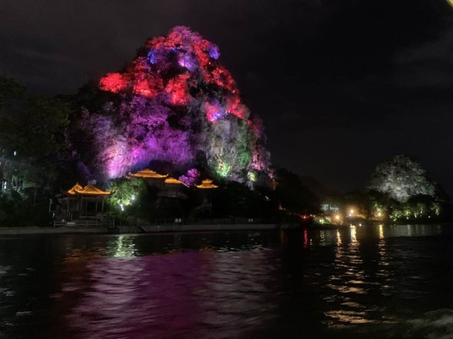 晚上继续吃螺狮粉,来到桂林,每一餐都想要吃螺狮粉。之后开启了夜游桂林的行程。深夜的桂林格外好看。来了叠彩山公园,名字好听,景色也特别好看。