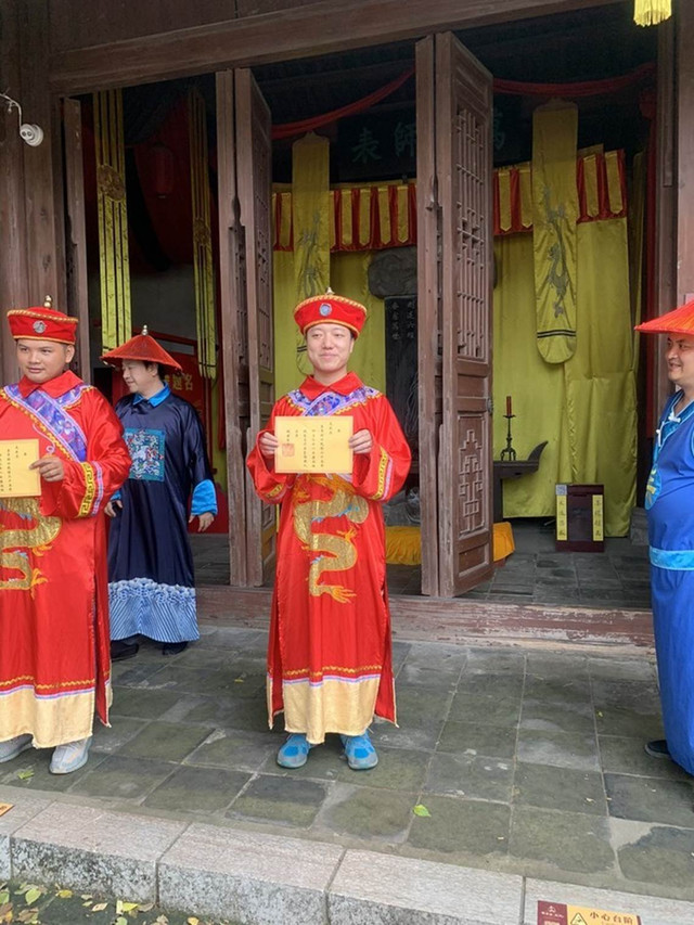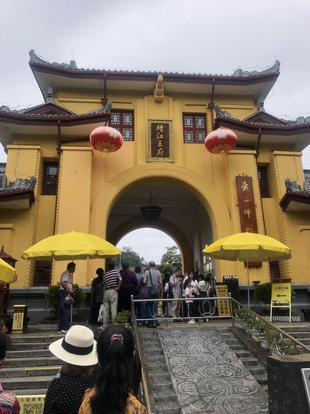 先经过了靖江王府。晚上可以去王府门口打卡。里面还有个乡试表演,可以参与进来,就好像是马上要去中状元当官似的。
