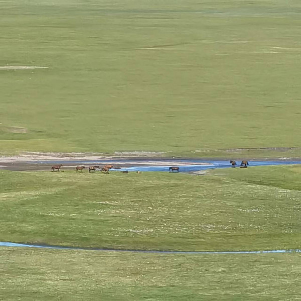 从庄园去黑山头的边境路上,经过一片绝美的湿地,是此行我最喜欢的地方,是真真的人在画中游,河水柔曲蜿蜒围绕着草原,河面是清澈的蓝天与白云,一片静谧下,远处有饮水的马群,近处有纷飞的蝴蝶和蜻蜓以及嗡嗡的虫鸣,唯独没有人类制造的喧嚣。若能背上画架,沉浸式的融入如画美景,记录下自己与看到的美景,那真是没有更美的了。