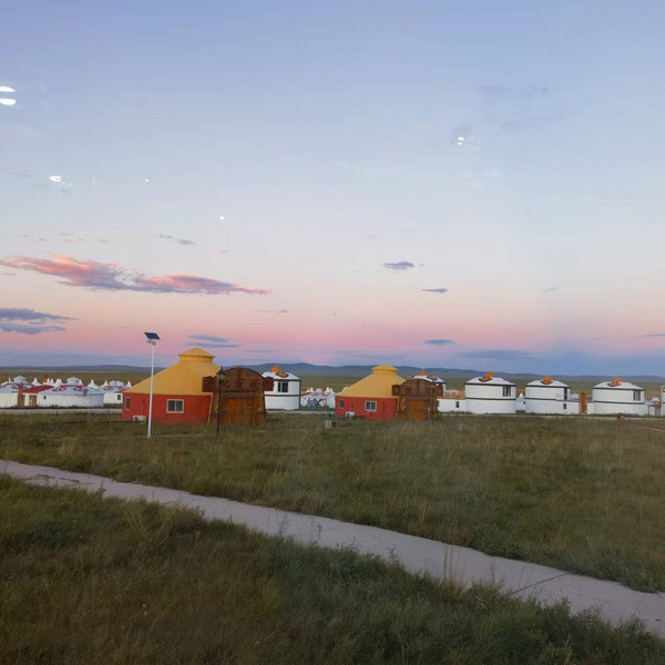 当晚我们住在黑山头一个叫什么白金汗的部落里,搌布蒙古包,说是星空包,其实是有个毯子盖在屋顶,要看星空就得接受两三点钟天亮照进蒙古包里的待遇,因为没有人半夜为你爬到屋顶盖住窗户。晚上有烟火和篝火晚会,参与一下挺好玩的,餐食一般,我们去新城里吃的火锅,味道还不错,就是老板结算给噼里啪啦一顿按收多了二三十块钱,我们也没计较。