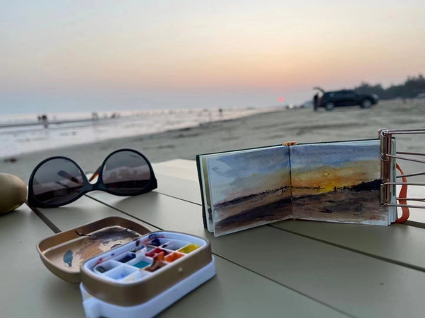 用画笔记录下此刻的海,但听,涛声阵阵。