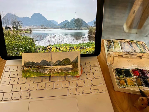 不经意间,一幅小小的水彩从笔尖缓缓流出。