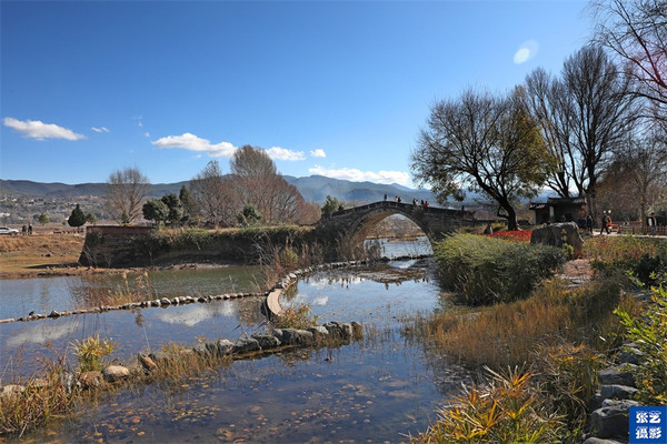 在古城外,寺登街东面的黑潓江上,静静地卧着一座名为玉津的古桥。玉津桥是当年茶马古道出入沙溪古镇的必经之地。大家站在玉津桥上沿着黑惠河远眺,可以看见诗和远方。