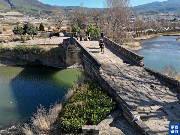 沙溪古镇上的玉津桥始建于清朝康熙年间,是一座具有悠久历史的桥梁。它是当地白族居民前往田间地头和进行商业活动的重要通道,同时也是茶马古道南连大理的关键桥梁之一。
