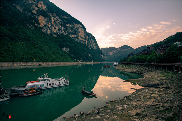 一江分隔两处地,这翠绿的乌江水把重庆和贵州分隔开。高山一面是贵州,而对面的古镇群就是著名的千年古镇--龚滩古镇。