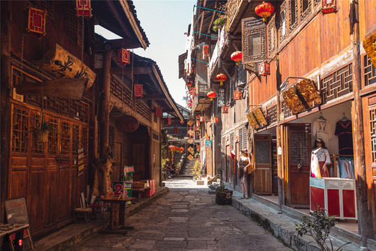 古镇因年月久远,且开发有度,不至于过分,所以镇中保留着许多独门珍藏。比如这里的青石板街,跌宕起伏,曲折幽深。这里的土家吊脚楼,悬空托起气势恢宏。街道上到处是绿茵花木,它们在屋檐上,或在樯橹间。我国著名国画大师吴冠中在这里留下画作“老街”,并因这里丰富的文化内涵,如纤夫文化,码头文化,盐商文化,宗教文化的参杂,使得这里五光十色。吴冠中评价道:“是唐街,是宋城,是爷爷奶奶的家”。