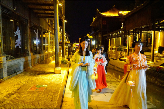 03酉州古城亮灯节10月1日准时上演,好看表演层出不穷,古城新貌待你赏