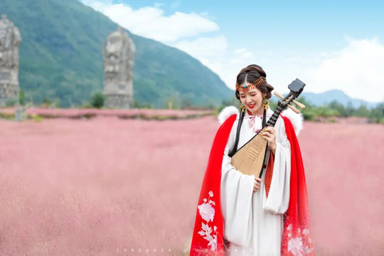 当你行走其中,半人高的粉黛乱子草萦绕身侧,仿佛畅游在粉色云海,随手一拍,都是浪漫。粉红色的粉黛乱子草,如同佳人的发丝一般,慵懒般地散开在地上,远远望去,随风摇曳的粉红色花海,就像施了魔法的棉花糖,让人直觉置身梦幻的童话世界,给萧瑟的秋天平添了几分温馨浪漫。