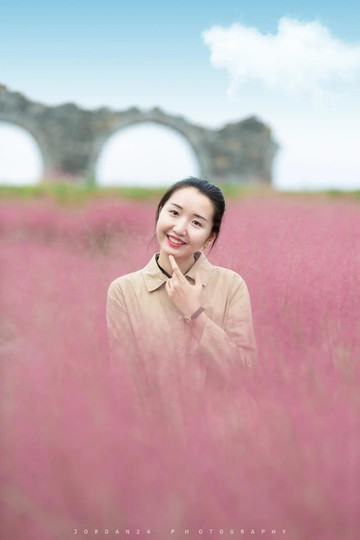 微风拂过,粉黛像波浪一样起伏,单独一株看并不会很起眼,但花开成片就像海一样,是一片粉色的海,亦或被阳光镀上一层金。