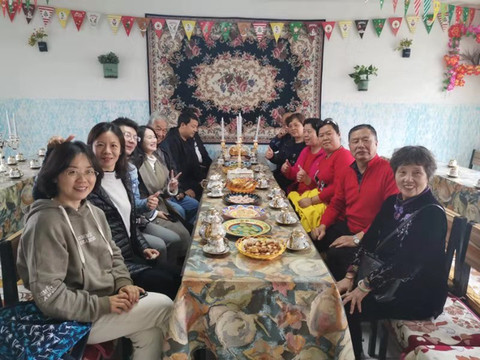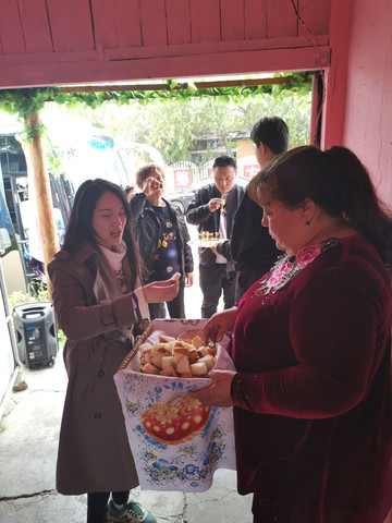 中午在俄罗斯族人家访,品尝小点心,做游戏,拉家常
