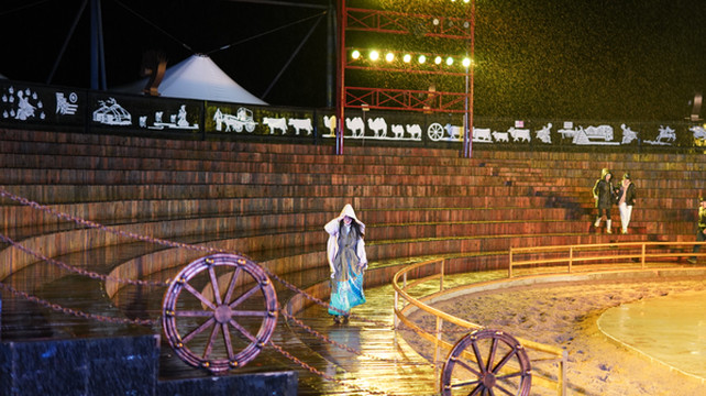 由于天公不作美,晚上下起了绵绵细雨,后来还越下越大了,原本蒙古演员在围着篝火起舞,邀请观众参与一起上台,我也被推了上去 !