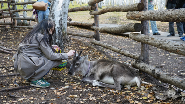 这驯鹿也是有点皮,简单做的木栅栏,不一会就越狱了,还不怕人!