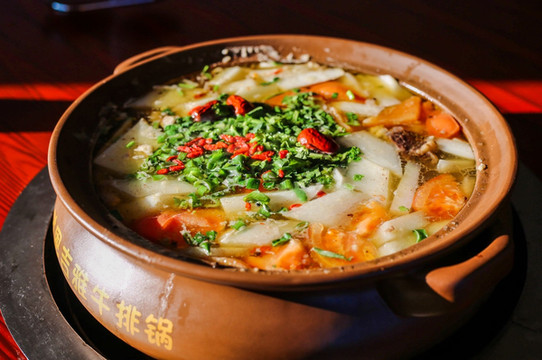 6、锅茶:对 额尔古纳 人来说,可以“一日一顿饭”,但必须“一日三顿茶”。奶茶不止是单纯意义上的饮用品,还是一种独特的文化和情感。锅茶主要先用传统方法将奶茶熬好,然后加入奶豆腐、奶酪、炒米等在锅中边吃边煮。