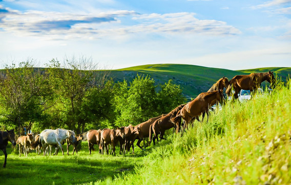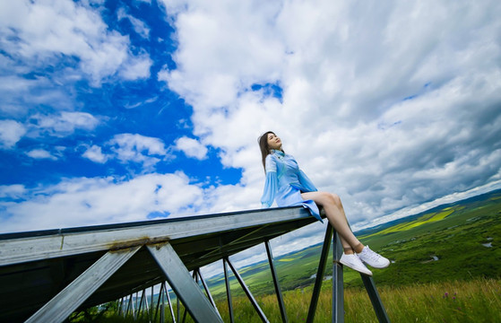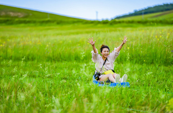 嘴角上扬的小窃喜,好像跟草原在恋爱,